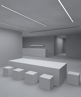 Das BIRO40 Lichtkanalsystem von Brumberg hat eine Profilbreite von 40 Millimetern. Die Leuchten lassen sich individuell nach Kundenwunsch konfigurieren. Das System besteht aus einem verwindungssteifen Aluminiumprofil und ist in drei Varianten verfügbar: als Einbau-, Anbau- oder Pendelleuchten. Die Pendelleuchte gibt es zusätzlich als Direkt-Indirekt-Variante.